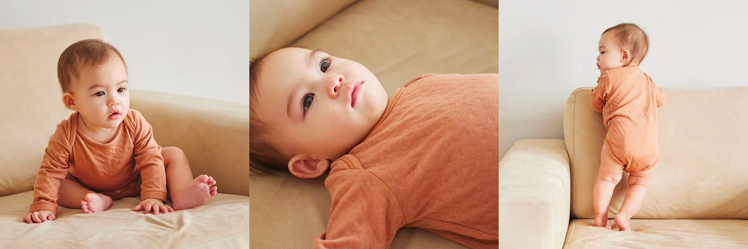 A long-sleeve type body that is suitable in autumn and winter. You can wear it alone and match it with bottoms, or wear it as under layer for colder weathers. It is a full cover type, and the snap button on the inseam makes it easy to put on and take off. Made with organic cotton. It has good moisture absorption and breathability, and has a soft and gentle touch.