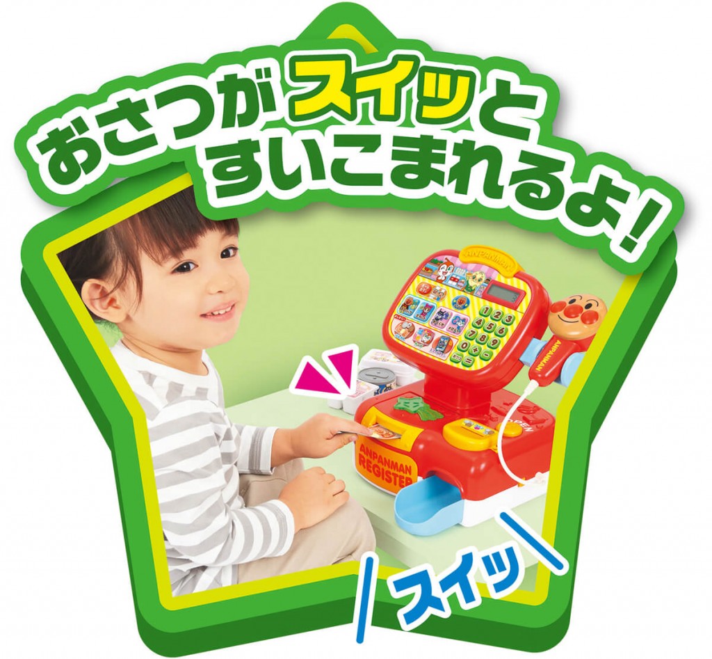 The Anpanman Cash Register is an exciting and interactive self-checkout style toy register designed for imaginative shopping roleplay. Children can scan items using the included scanner or star-shaped sensor, choose from three payment methods—cash, card, or smartphone—and enjoy realistic sound effects, voices, and melodies. With educational play modes like counting, numbers, and calculation, it's perfect for kids aged 1.5 years and up to explore early math and money-handling skills.