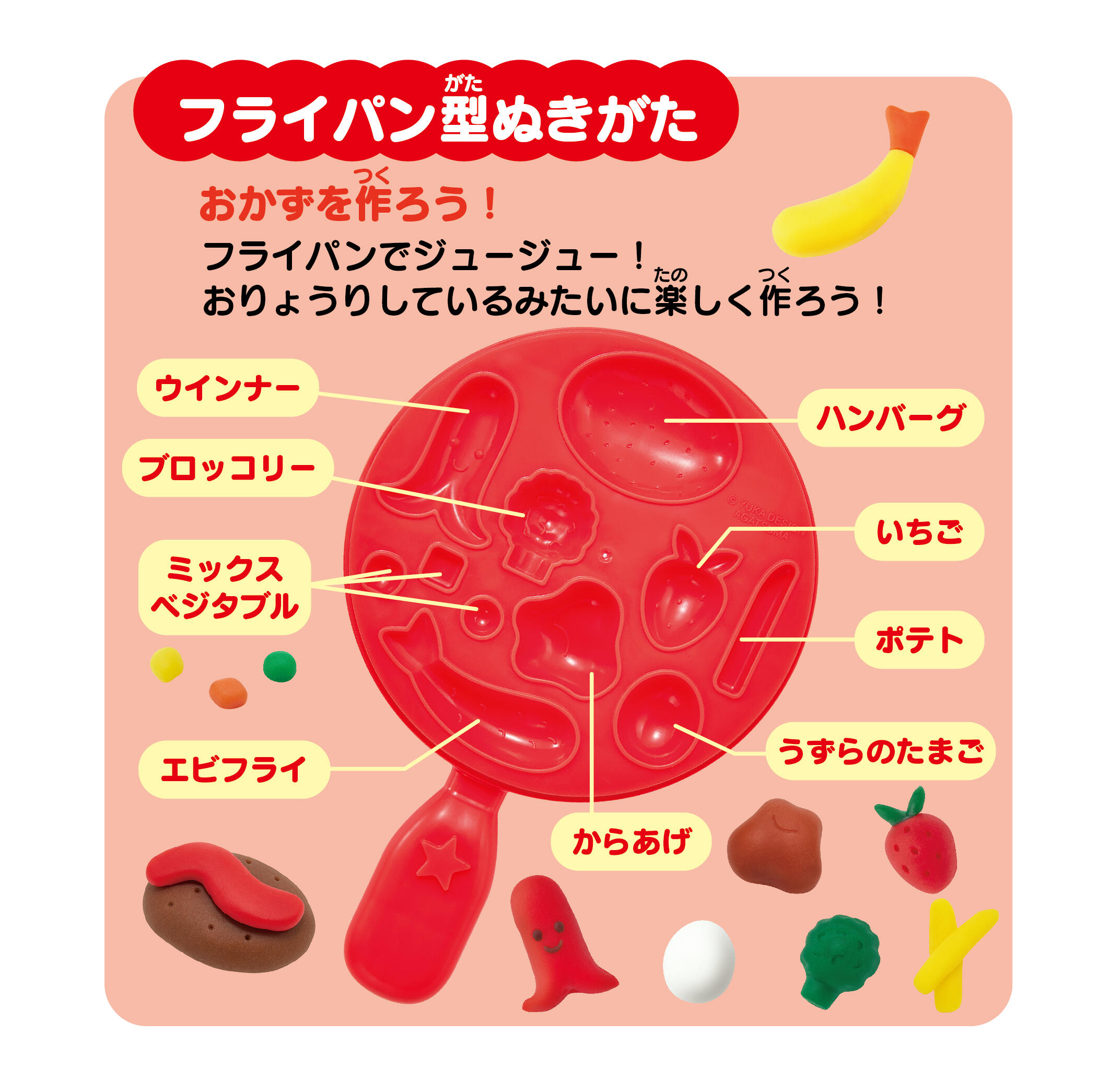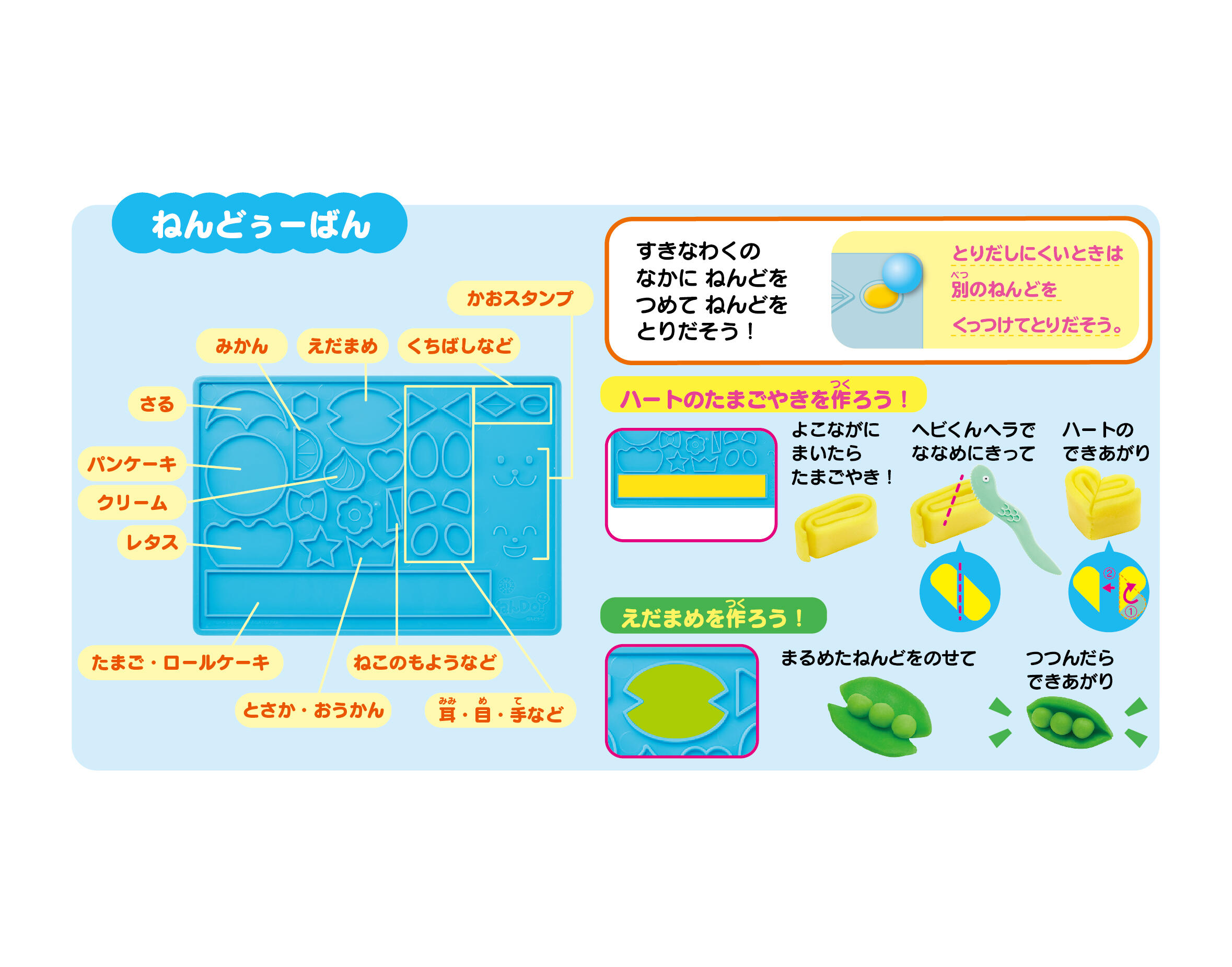Inside the clay board, there are various parts such as the face, eyes, ears, and mouth, so you can make cute character rice balls in countless ways by combining them with the onigiri mold. The finished rice balls and side dishes can be packed in the bento box for pretend play. Through the clay play of making food, you can expect to deepen children's interest and knowledge about food.