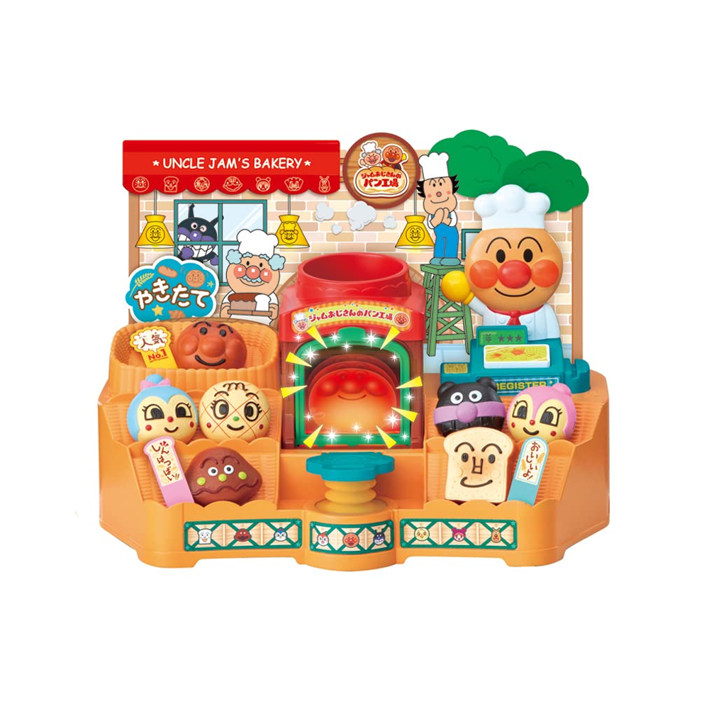 Watch the dough “rise” and puff up inside the glowing oven, just like real freshly baked bread. With seven adorable Anpanman bread characters, a shopping bag, and a takeout box, children can play baker, cashier, or customer in this delightful pretend-play set.