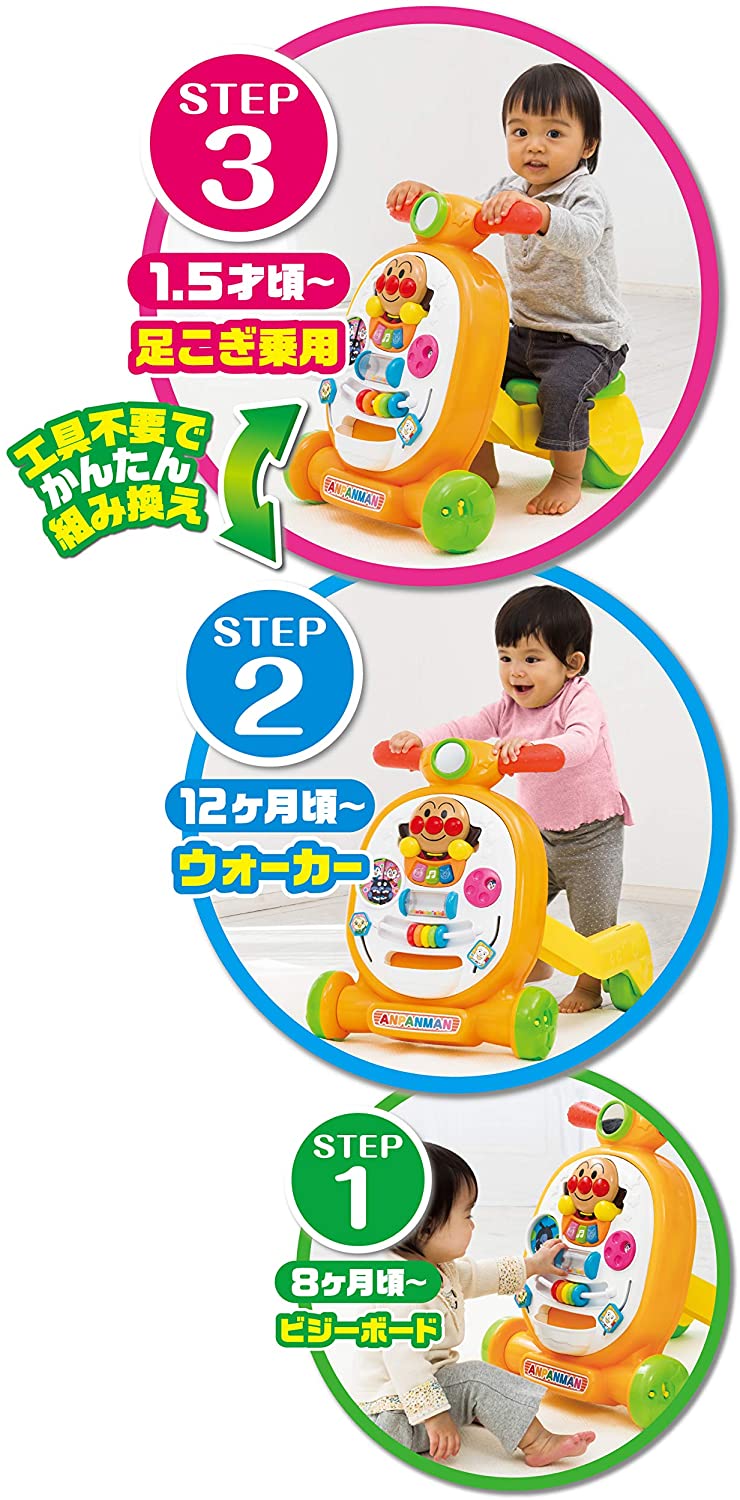 ● You can play for a long time in 3 steps: busy board (from the time of sitting), walker (when you were around), and riding (around 1.5 years old).