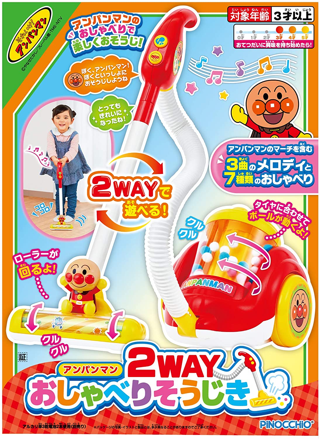 Manufacturer recommended age 3 years and up ● It is a vacuum cleaner that can be transformed into a 2WAY and you can enjoy chatting and melody.