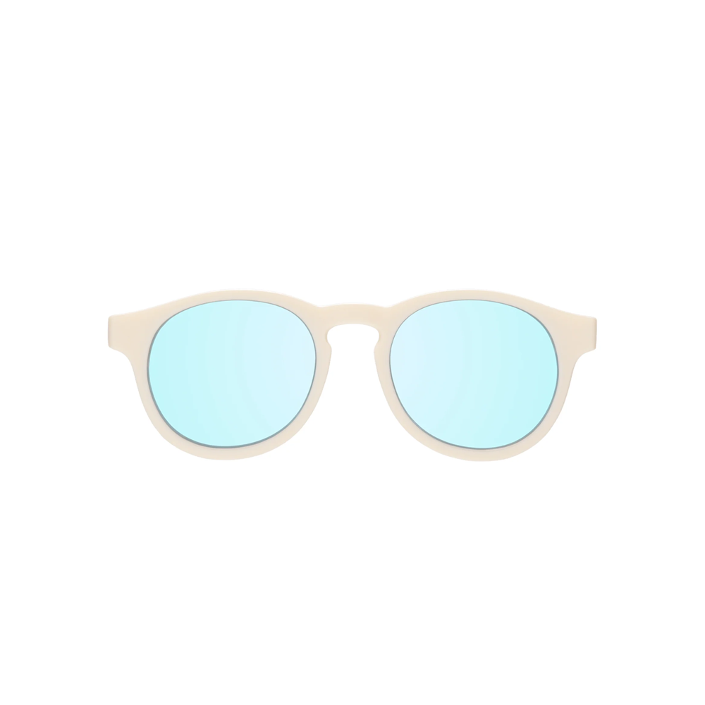 These stylish round-frame sunglasses in Sweet Cream feature bold turquoise mirror lenses, offering both fun and sun protection for your little one. A fan-favorite design that never goes out of style, these shades are perfect for active kids. Each pair comes with a microfiber storage bag that doubles as a cleaning cloth, keeping your child’s sunglasses safe and clean on every adventure.