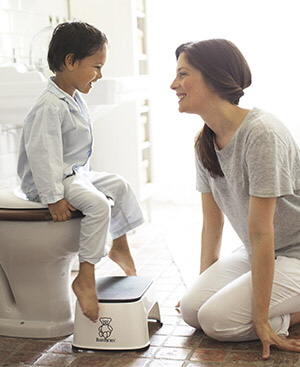 Help your child to climb up and down from the toilet trainer until it is safe for the child to do so alone.
