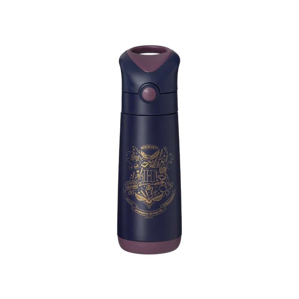 Take all day hydration to the next level with our 500ml insulated drink bottle. Insulating super powers indeed! The triple layer insulation in our larger bottle size will help keep liquids cool for up to 15 hours and warm for up to 8 hours. The front press button opening can be used with one hand to help with those big schoolyard thirsts and the integrated carry handle means it’s always on hand. The easy drink silicone straw offers free flow drinking and once done, click the lid back in place for leak free schoolbags.
