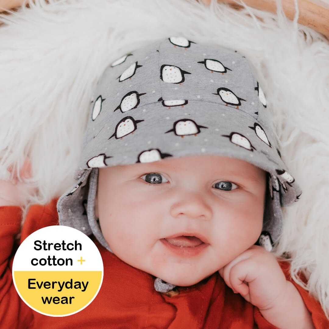 The Legionnaire hat is built for comfort - so much that kids forget they're wearing it! This makes it the best style for hat-haters and babies to wear while in prams and baby carriers. Made with super-stretchy and lightweight cotton jersey for a perfect fit keeping your little ones head cool under the hot Australian conditions & rated UPF50+ excellent protection.