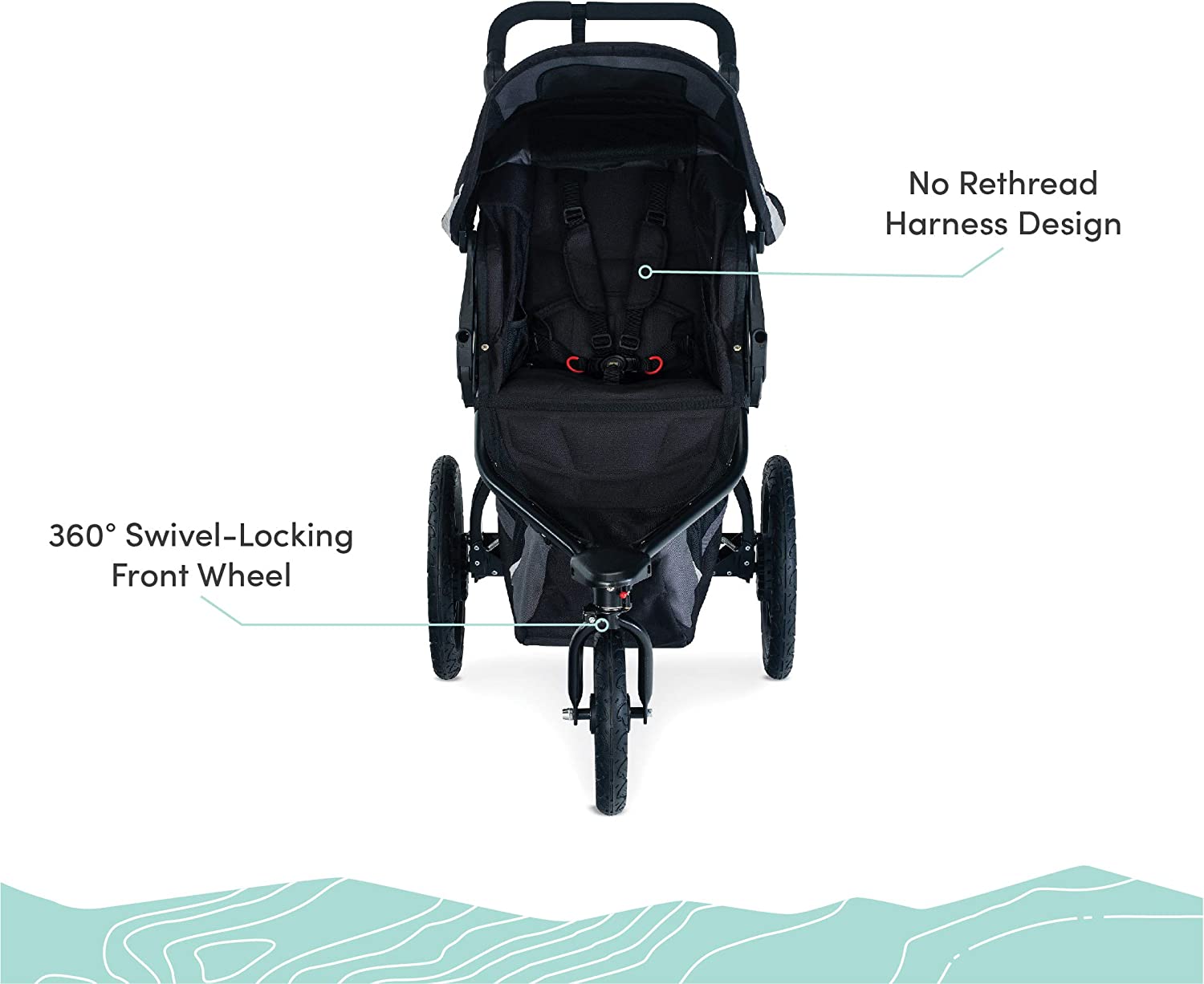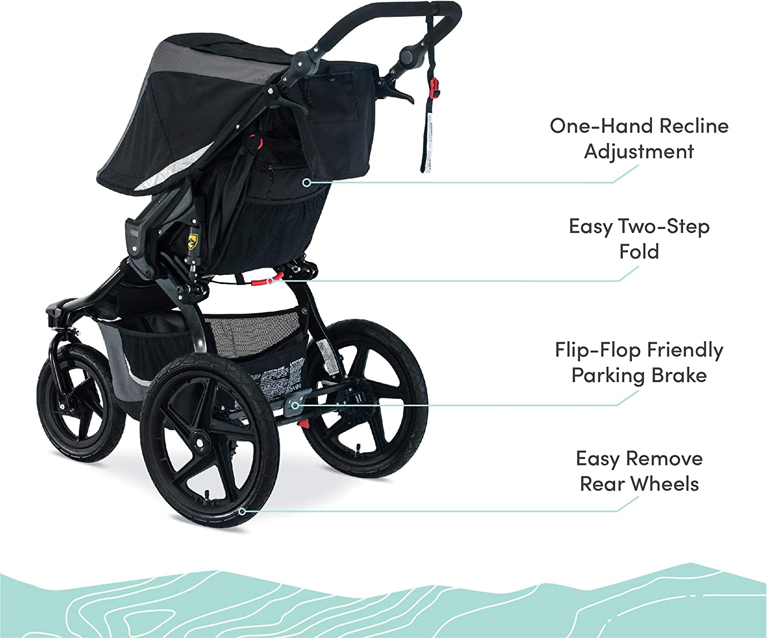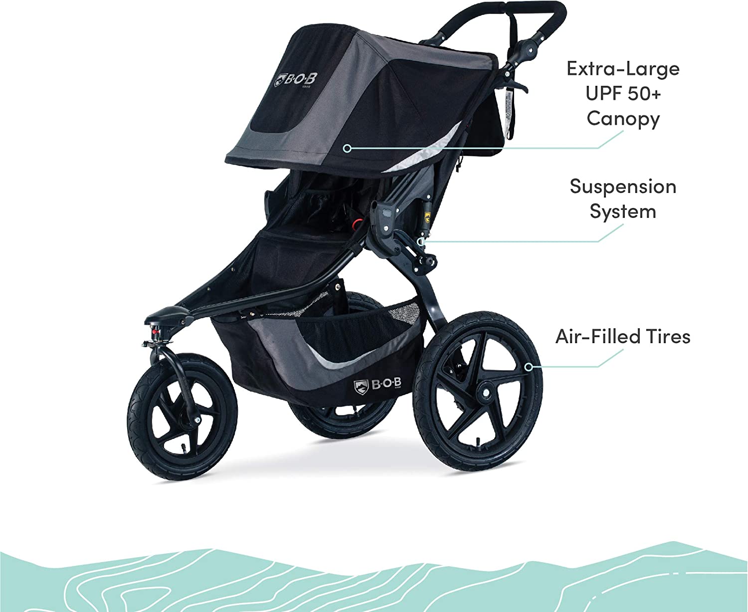 - Mountain bike-style suspension & air-filled tires provide an ultra-smooth ride on any type of terrain from sidewalks to hiking trails.