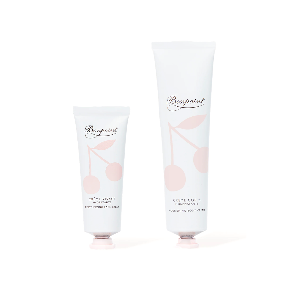 (Re)discover Bonpoint's iconic moisturizing face cream and nourishing body cream in a tube format decorated with a giant pink cherry.