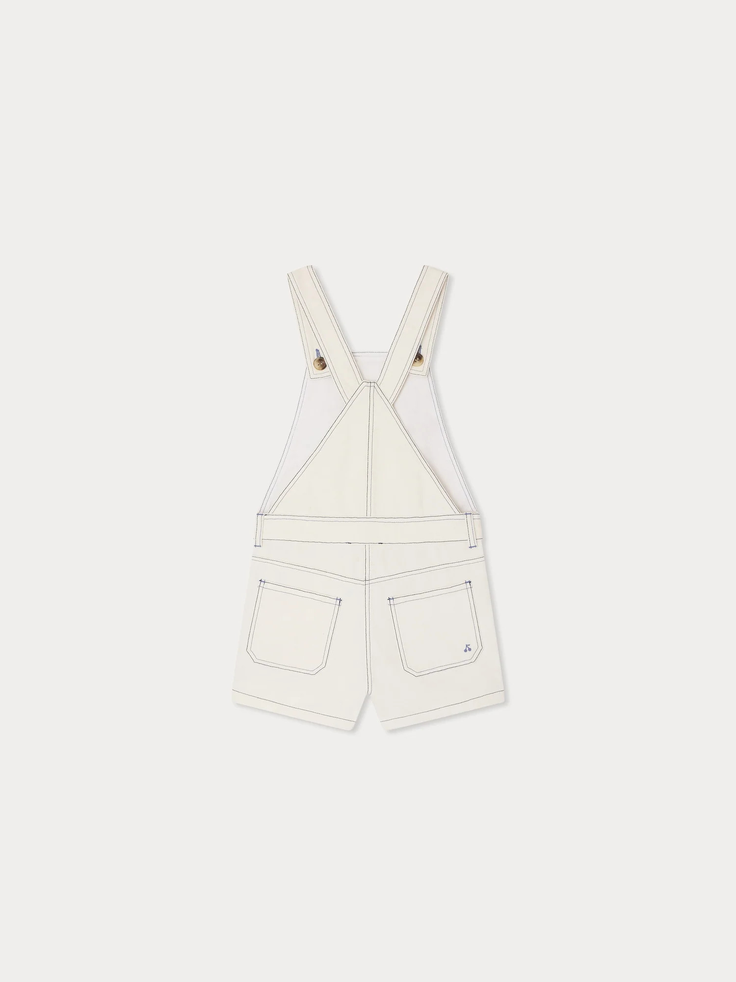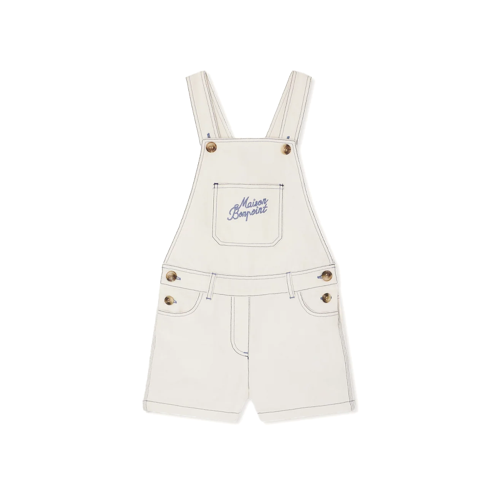 These Laga organic cotton overalls for girls are a comfortable choice for warm weather. They stand out with their two-tone buttons, contrasting topstitching, and Bonpoint embroidery on the front.