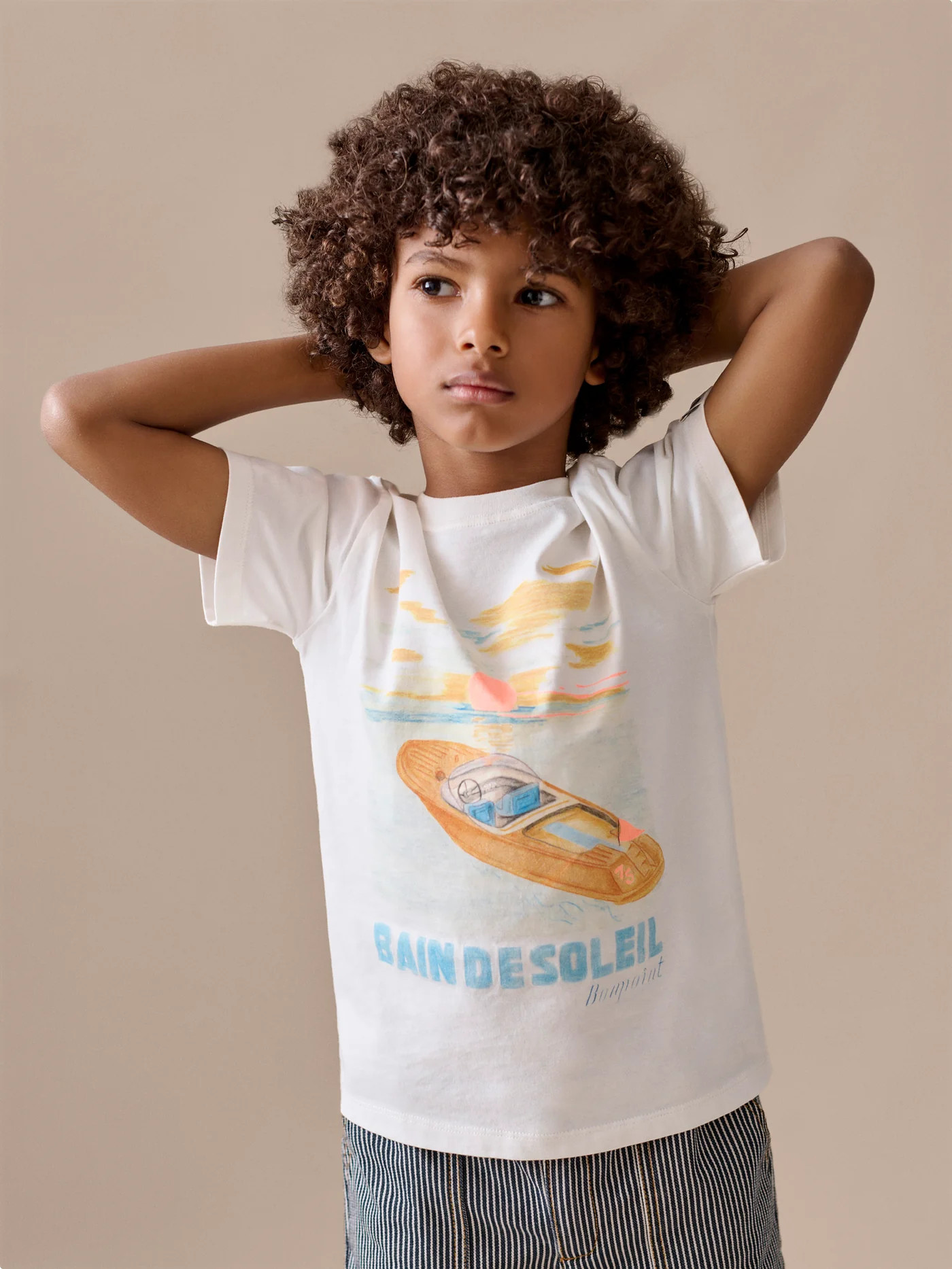 This Thibald T-shirt for boys is an essential piece to pack for a sunny vacation. Made in organic cotton, it features a Bonpoint planet tag on the sleeve.