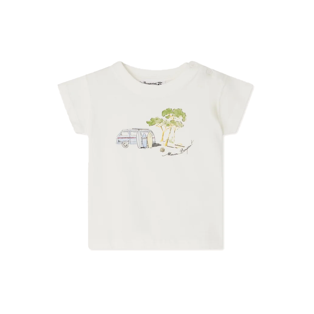 The vacation-inspired silkscreen print on the front of this Tom T-shirt for babies provides a unique touch. The design is easy to slip on and off thanks to the buttons on the shoulder.