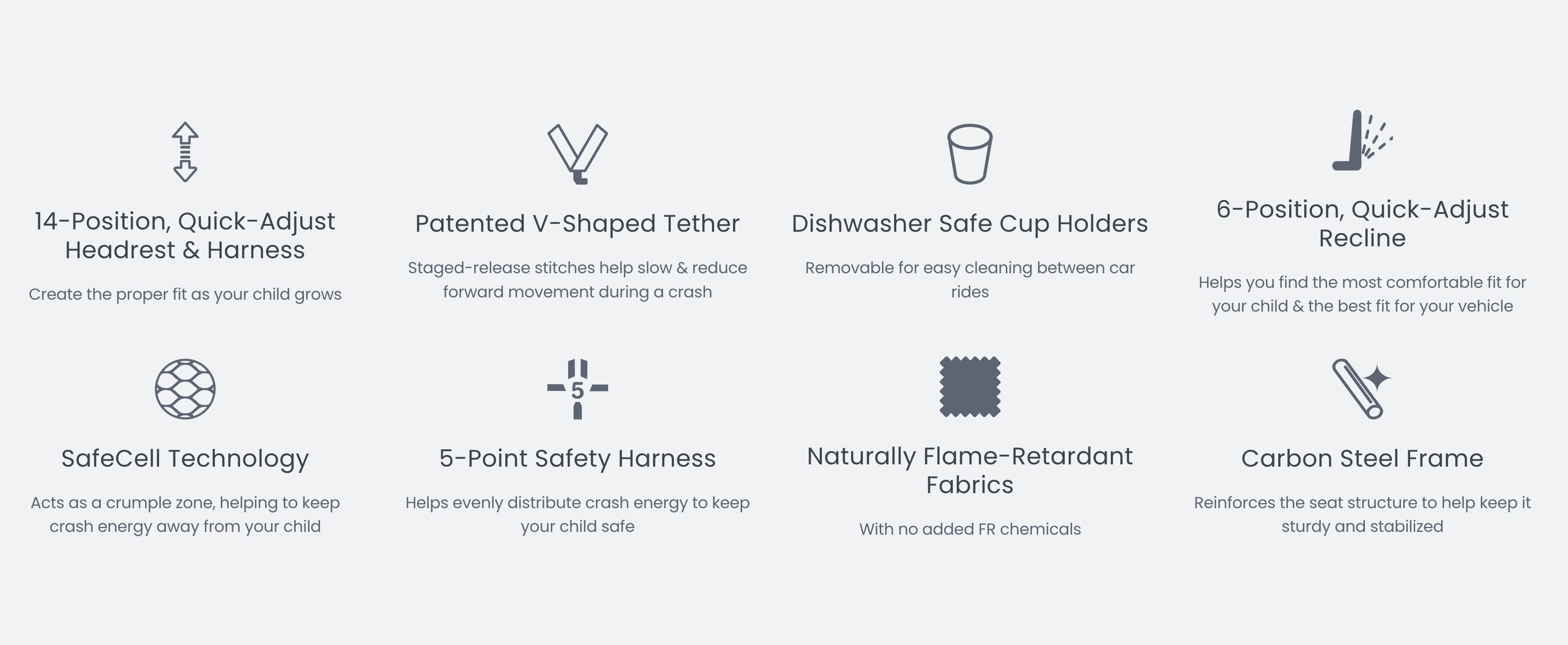 - SafeCell Technology: Acts as a crumple zone, helping to keep crash energy away from your child
