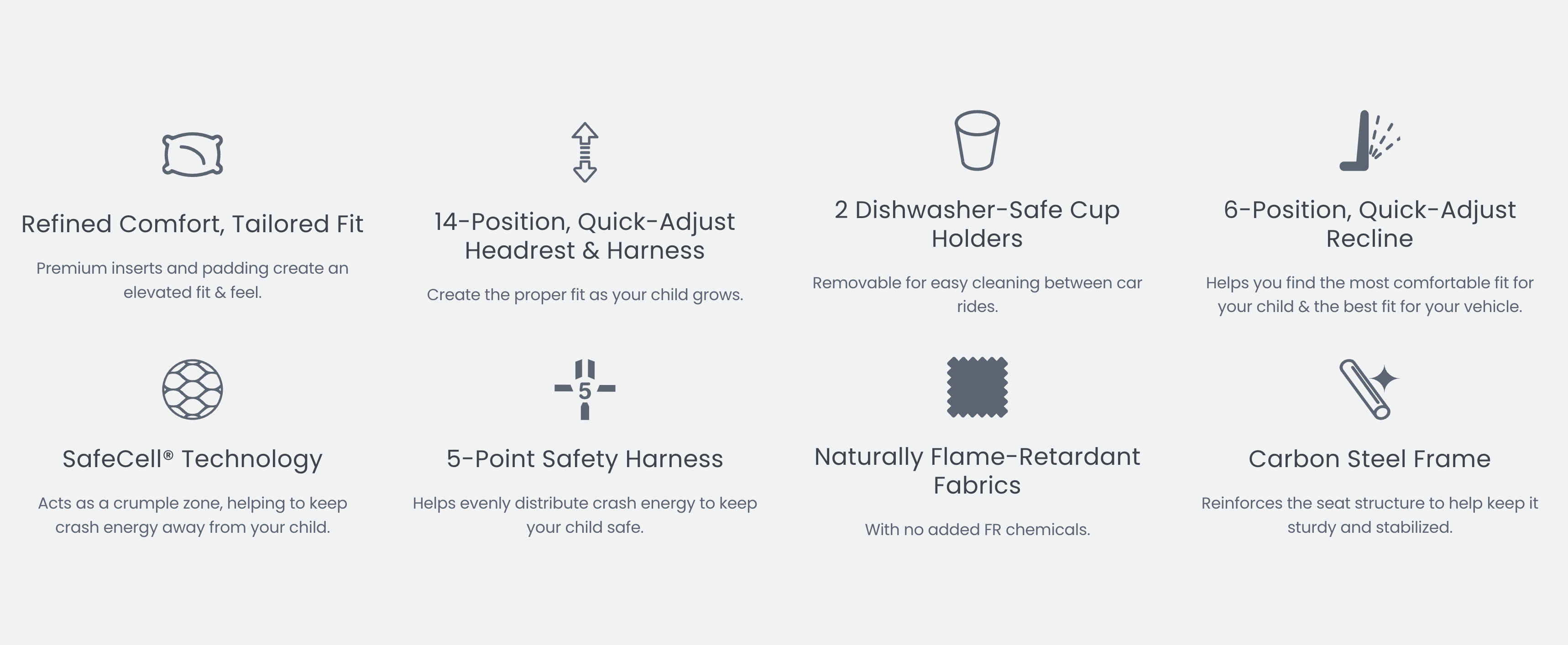 - SpaceSaver Design: Slim outside, spacious inside: 17” seat design without compromising on trusted Britax safety & premium comfort.