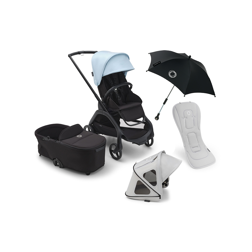 Keep your baby cool, protected, and comfortable during sunny outings with the Bugaboo Dragonfly Bassinet Summer Bundle. This lightweight, city-friendly stroller set combines the Dragonfly’s innovative design with breezy accessories for effortless summer strolls.