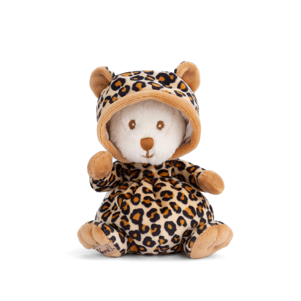 Ziggy Leopard is the perfect companion for those who love the thrill of the jungle and the joy of imaginative play. Ziggy Leopard is dressed in an ultra-soft, leopard-print hoodie that transforms this cuddly bear into a daring jungle explorer. The hoodie features adorable leopard ears and a playful tail, adding a touch of exotic flair and fun to his look.