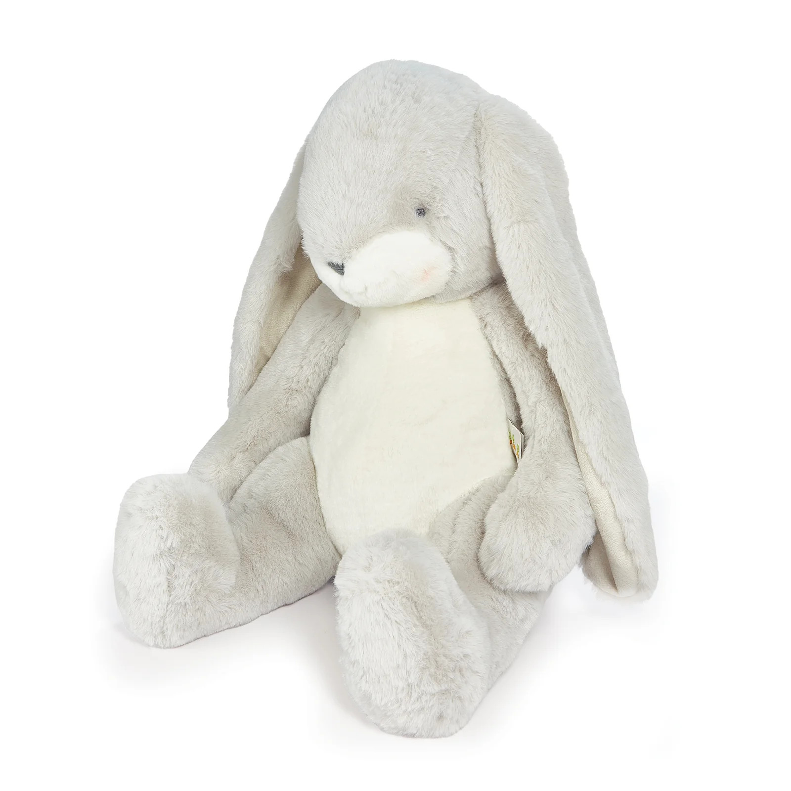 Meet Big Nibble Bunny! Huggable, luggable and simply adorable. Nibble’s long lop ears are buttery soft and perfect for soothing away worries. Luscious silver-gray fur, warm white tummy, tail, and muzzle.