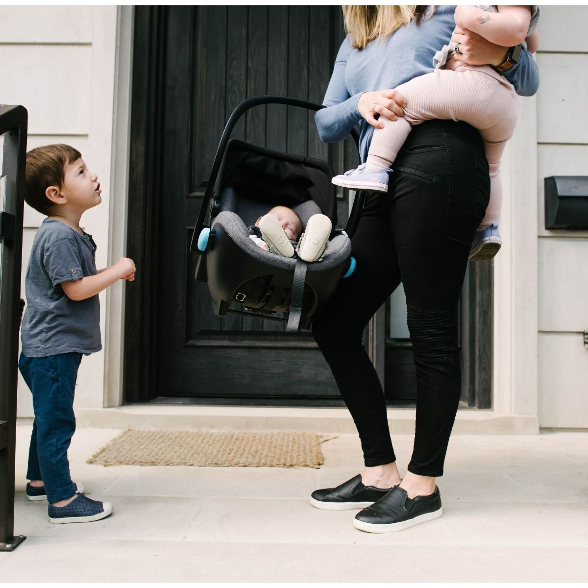The lightweight design (9 lb) and a convenient one-handed quick-release make it easy to remove the carrier from a stroller or car seat base.