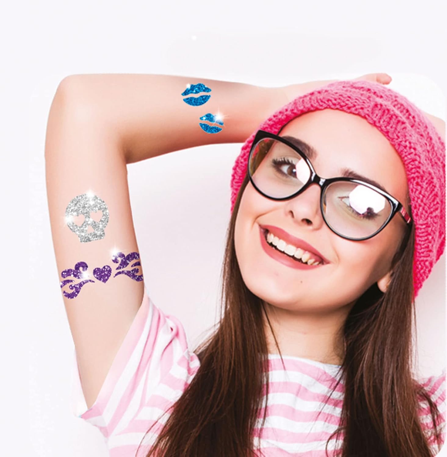 - ADD COLOURS TO YOUR TATTOOS -- The product contains adhesive stencils, colored glitter and Glow in the Dark effect body dye. Exclusively for all the Crazy girls at the stall there are also many fantastic augmented reality tattoos,