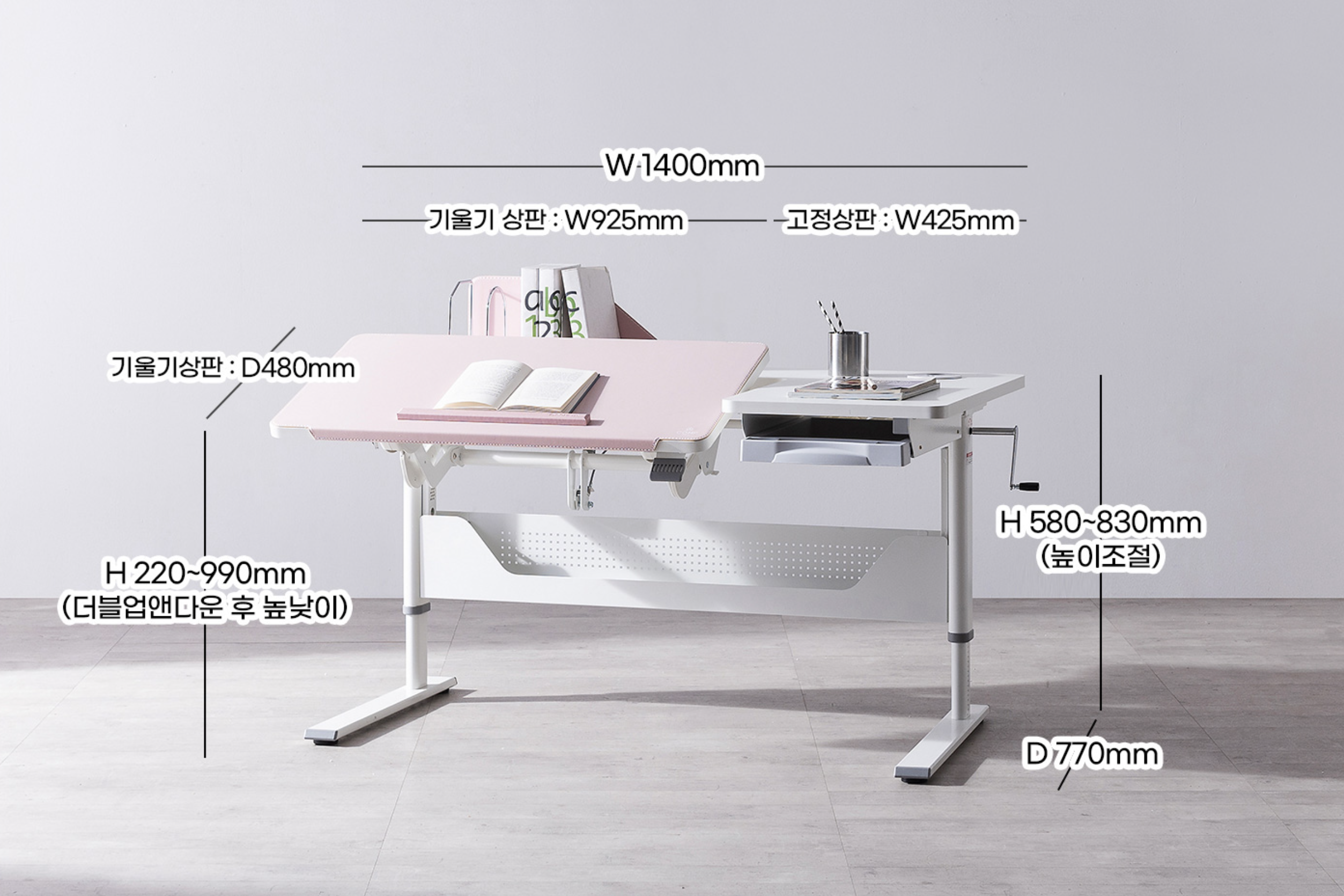 W1400 x D770 x H580-830 mm (±1cm)