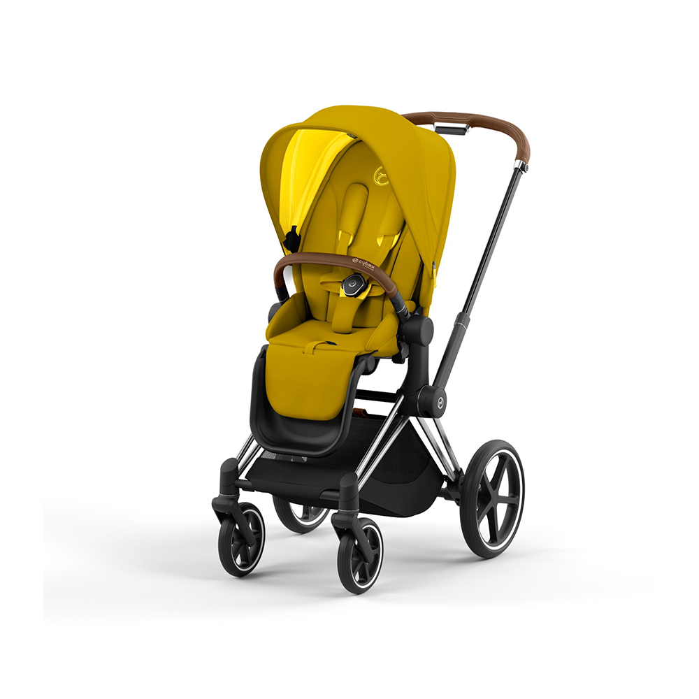 The CYBEX PRIAM 4 stroller combines timeless design elements with new features that make life even easier and meet your highest expectations. The unique one-pull harness helps you secure your child in the stroller in seconds, with just one hand. One frame enables three different modes of use: from birth with the PRIAM 4/e-PRIAM 2 Lux carry cot or any CYBEX infant car seat (both sold separately), and later with the seat unit as a luxurious parent-facing or forward-facing stroller.