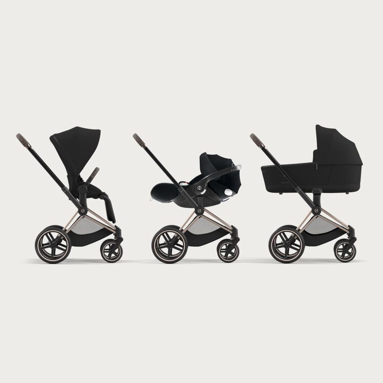 The CYBEX PRIAM 4 stroller combines timeless design elements with new features that make life even easier and meet your highest expectations. The unique one-pull harness helps you secure your child in the stroller in seconds, with just one hand. One frame enables three different modes of use: from birth with the PRIAM 4/e-PRIAM 2 Lux carry cot or any CYBEX infant car seat (both sold separately), and later with the seat unit as a luxurious parent-facing or forward-facing stroller.
