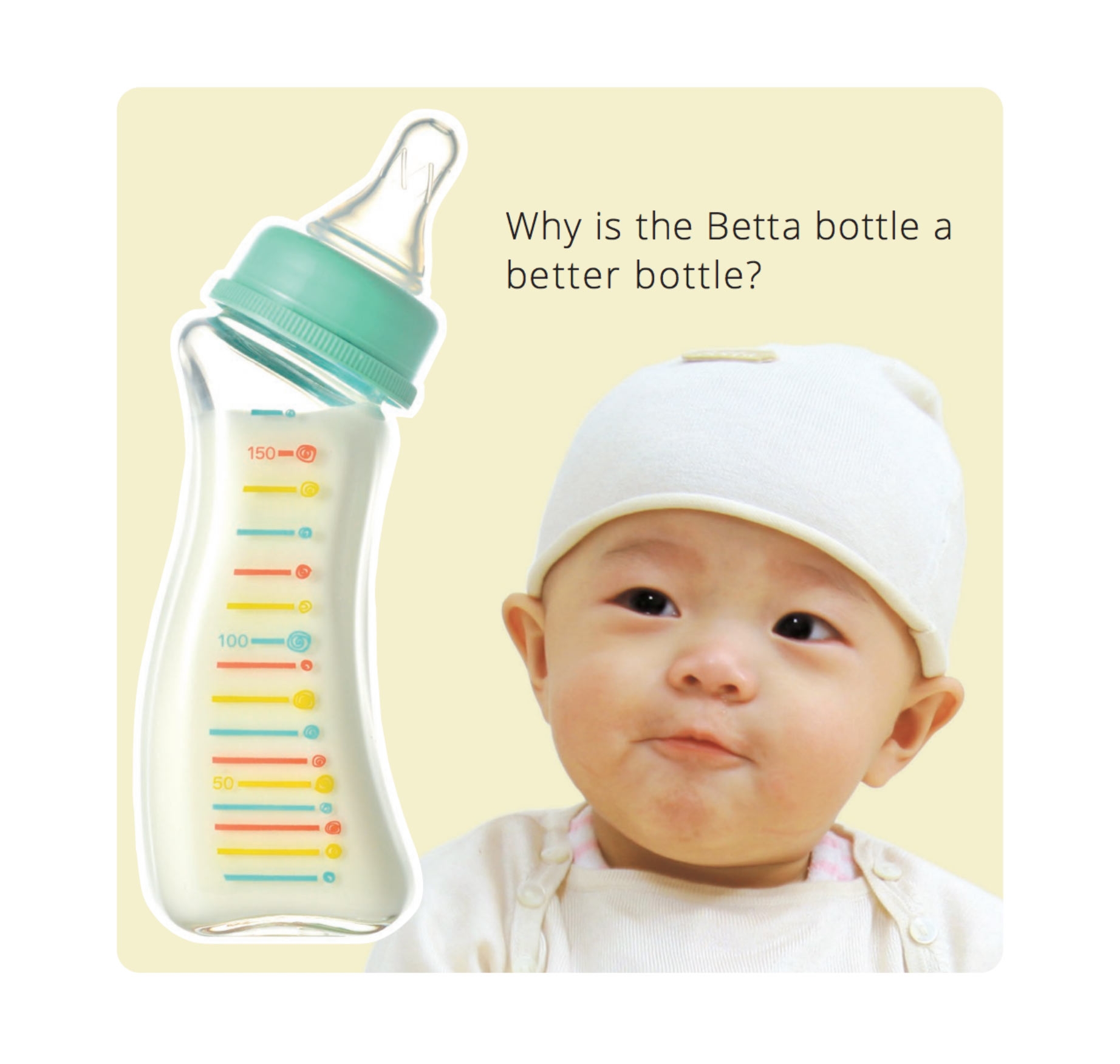 "Make the ideal feeding posture possible" - this is what the curve on Dr. Betta baby bottle is for. It was developed focusing on the difference in incidence of sicknesses for breastfed babies versus bottle-fed babies. All the pediatricians involved in our product development estimate that "70% of sicknesses that children experience in their first few years of life is caused by a lying-flat feeding posture". Our "Dr. Betta baby bottles" are developed for all the bottle-fed babies, so we sincerely hope to be your baby's choice.