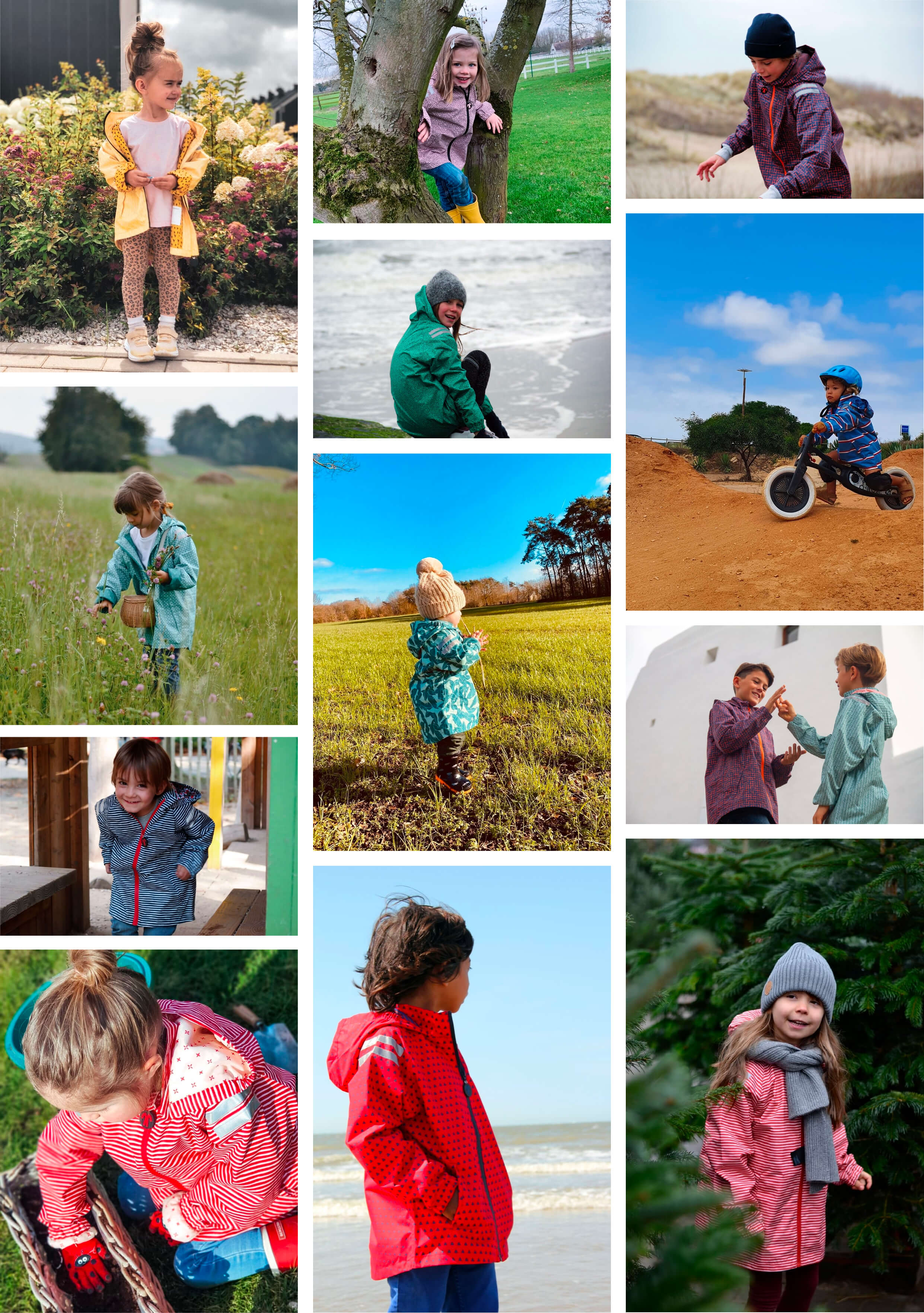 Our rainjackets have a great design and breathable lining. Wear it during all seasons: to go to school, on the beach or during a nice walk in the forest. Combine with our rain pants for a completely waterproof outfit!