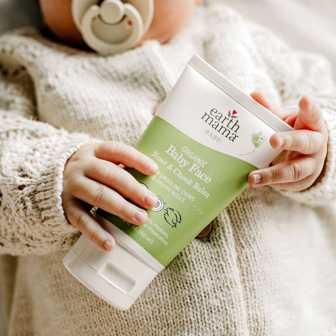 Slather with abandon! Earth Mama's Organic Baby Face Nose & Cheek Balm is a calendula coconut balm formulated for safely comforting and moisturizing chapped, dry skin on babies through big kids, and everyone in the family.