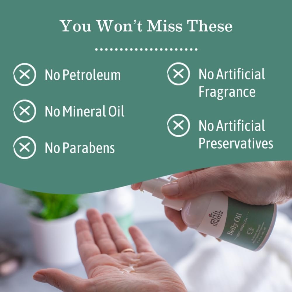 - Herb-Infused Hydration: Made with organic borage, calendula, jojoba, and sweet orange peel oils to nourish and soothe stretching skin.
