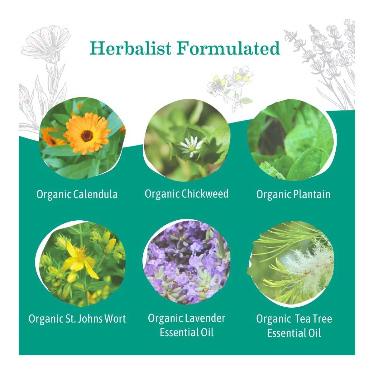 olea europaea (olive) fruit oil*, butyrospermum parkii (shea) butter*, beeswax*, simmondsia chinensis (jojoba) seed oil*, lavandula angustifolia (lavender) flower oil*, calendula officinalis (calendula) flower extract*, hypericum perforatum (st. john's wort) extract*, stellaria media (chickweed) extract*, plantago major (plantain) leaf extract*, melaleuca alternifolia (tea tree) leaf oil* *organic/biologique' '