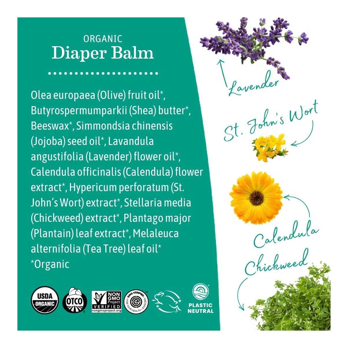 Seeing red? Earth Mama's Organic Diaper Balm to the rescue, with a blend of powerful organic herbs, including St. John's wort, plantain, chickweed, and calendula and carefully selected organic essential oils for soothing diaper cream that protects and comforts baby's delicate diaper area. Thoughtfully formulated to be safe and effective without harmful ingredients, Organic Diaper Balm is USDA Certified Organic and chosen by hospitals NICUs. And don't worry, it's cloth diaper friendly.