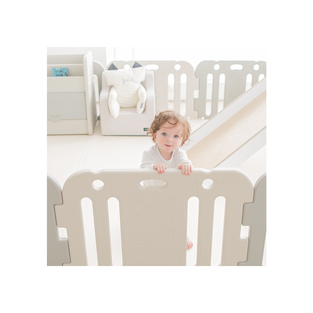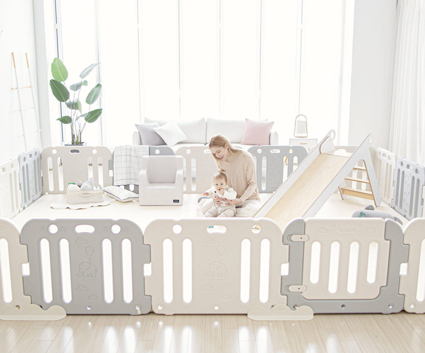 Ggumbi playpens are made with non-toxic, BPA-free materials. All raw materials are certified and imported from Korea, ensuring high safety and quality standards. The panels are made of PE (Polyethylene) and the connectors are PP (Polypropylene) — both materials are widely used in baby products for being safe, durable, and free from harmful substances.