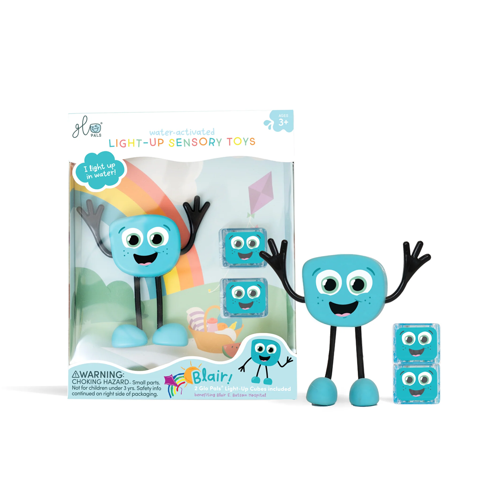 Insert your Glo Pals Light-Up Cube into the back of each Pal, drop it in the water, and watch it light up! Featuring bendable arms and colorful personalities, each Pal proudly illustrates the uniqueness in every child. Blair comes with 2 Glo Pals® Light-Up Cubes included in the box.