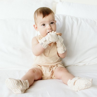 - Two-part closure system that keeps mitts secure on baby's hands