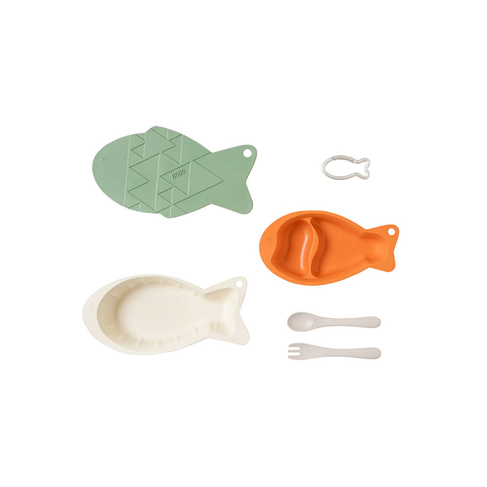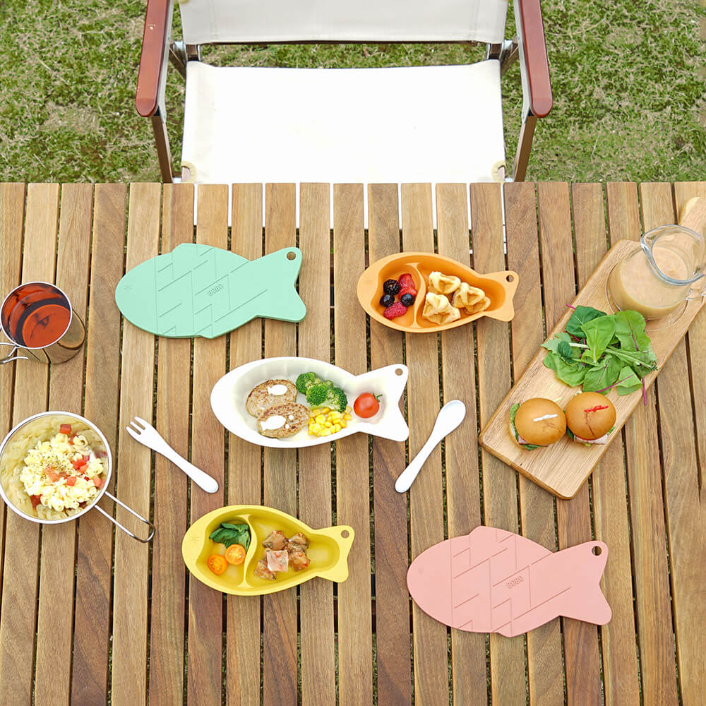 The plate is designed to be easy for adults to hold, so it is easy to feed babies, and it is also designed to be easy for children who are not accustomed to spoons and forks to handle.You can carry it by passing a carabiner through the tail fin of the fish, and it will be useful in various scenes.
