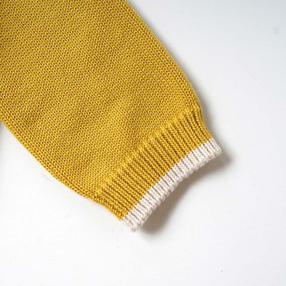 The color scheme knit pullover knitted with this feather cotton thread is available in two colors, the trendy terracotta and mustard.