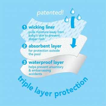 • i play.® is the original Swim Diaper manufacturer and has a patented three-layer design. The wicking liner helps prevent diaper rash, the inner absorbent layer helps protect against messes outside the pool, and the waterproof outer layer works with the snug-fitting waist and legs to provide secure protection from unsanitary and embarrassing accidents in the pool.