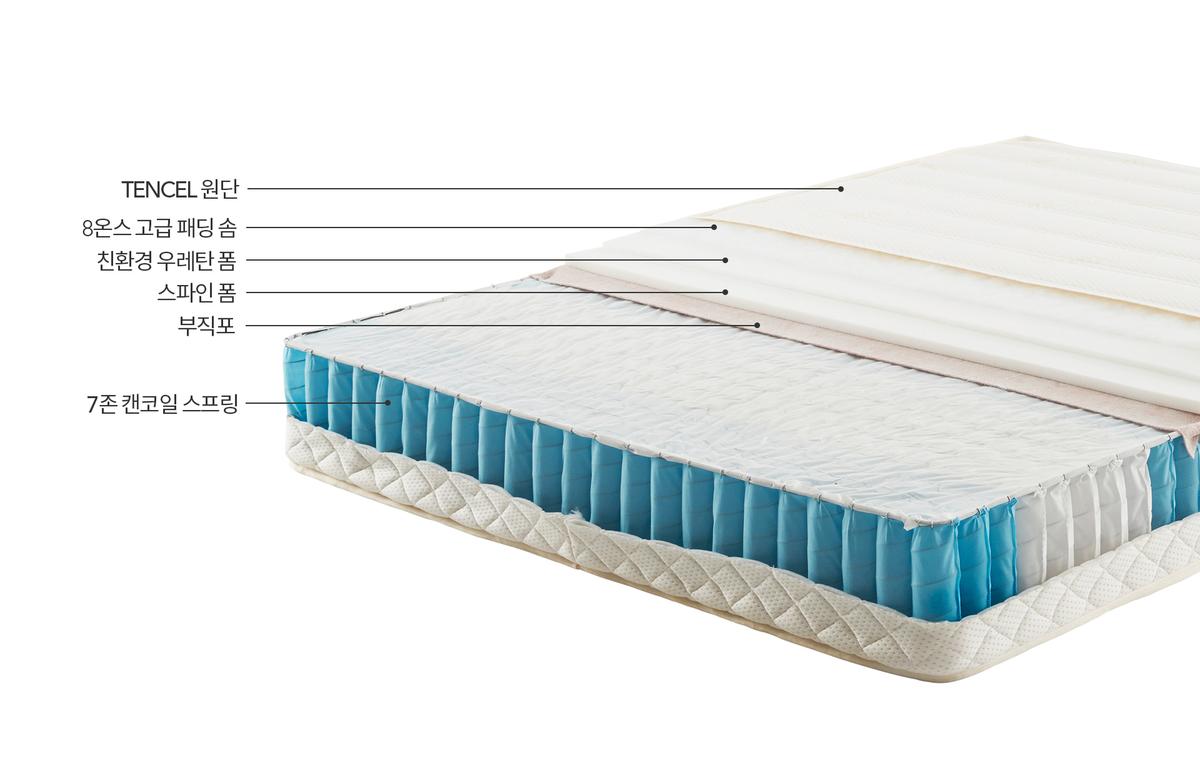 It is an independent can-coil spring mattress with excellent elasticity and support. The foam with solid support provides a sense of stability by firmly supporting the spine. Eco-friendly fabric with antibacterial treatment, so even sensitive skin can use it with confidence.