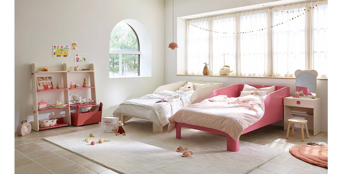 The colored dots on the side panels and shelves inspire children's sensibility.
