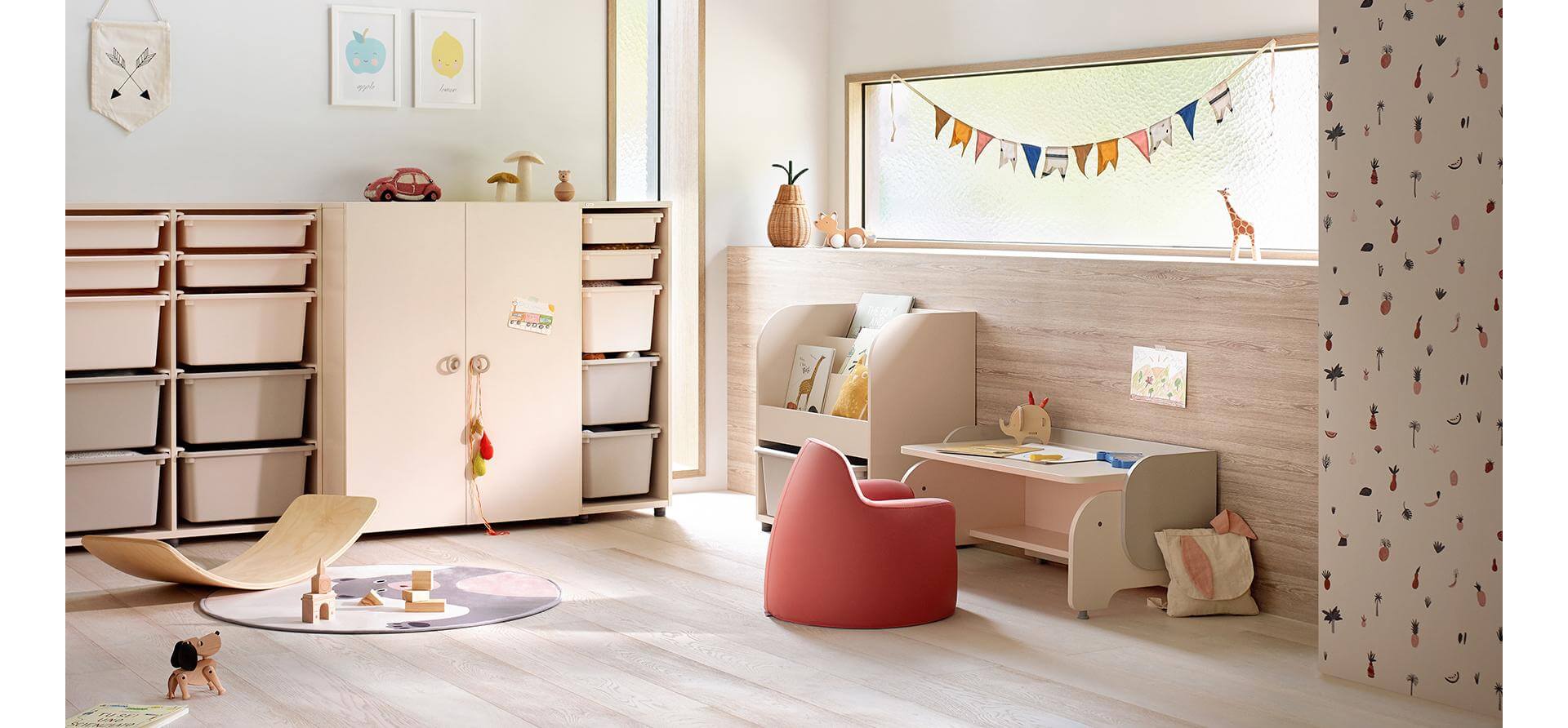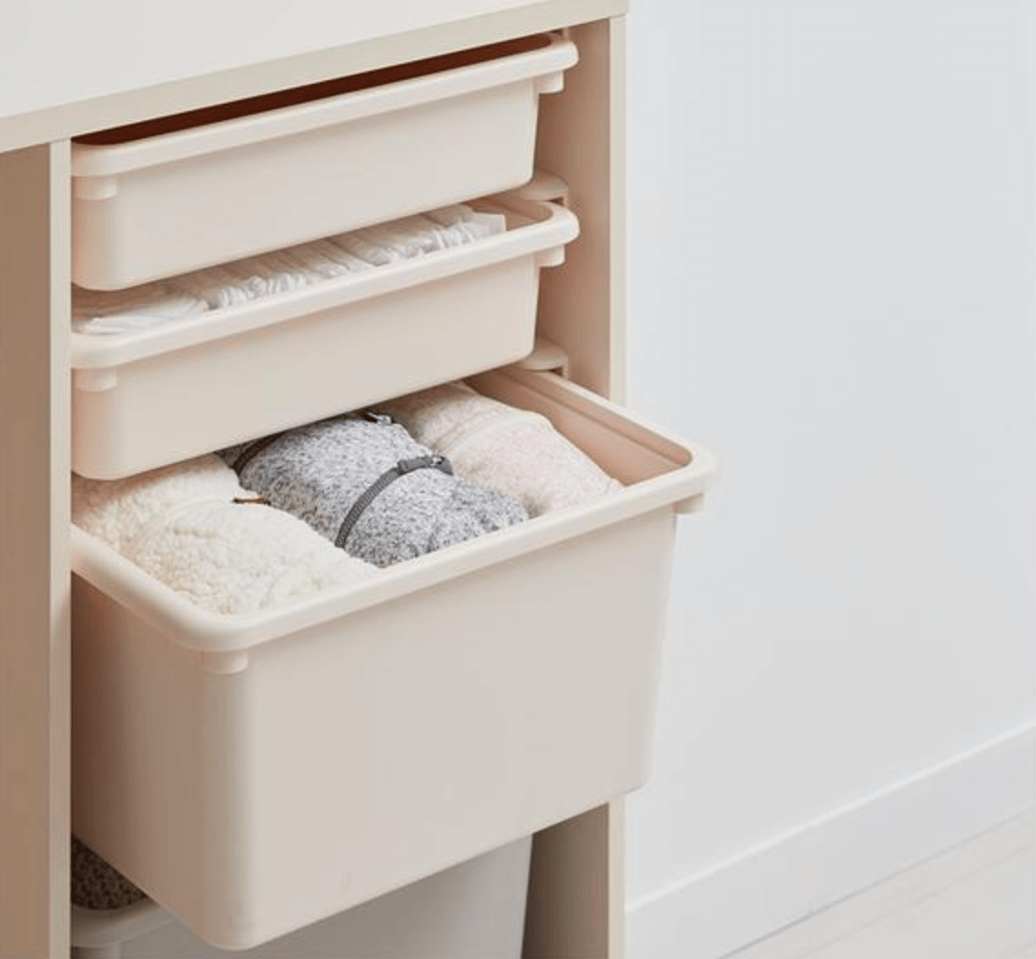 From children's toys and stationery to clothing. This is an 1150-wide storage closet that can neatly store various items. At a height that matches your child's height, you can take out and organize things on your own.