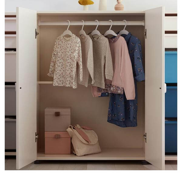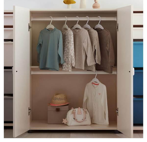 It can store accessories such as bags and hats. You can hang more children's clothes and short tops and bottoms on the two hanger rods.