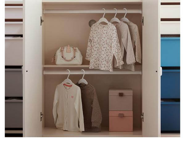 Keep your clothes neatly organized, not only for storing clothes but also for overflowing toys.