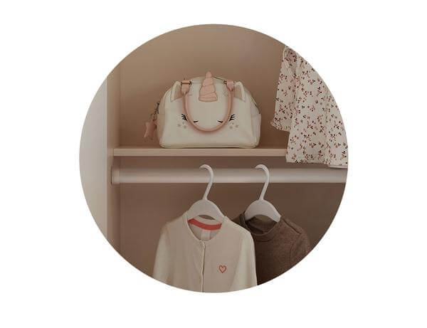 It can store accessories such as bags and hats. You can hang more children's clothes and short tops and bottoms on the two hanger rods.You can use it with 2 hanger rods when your child is young,