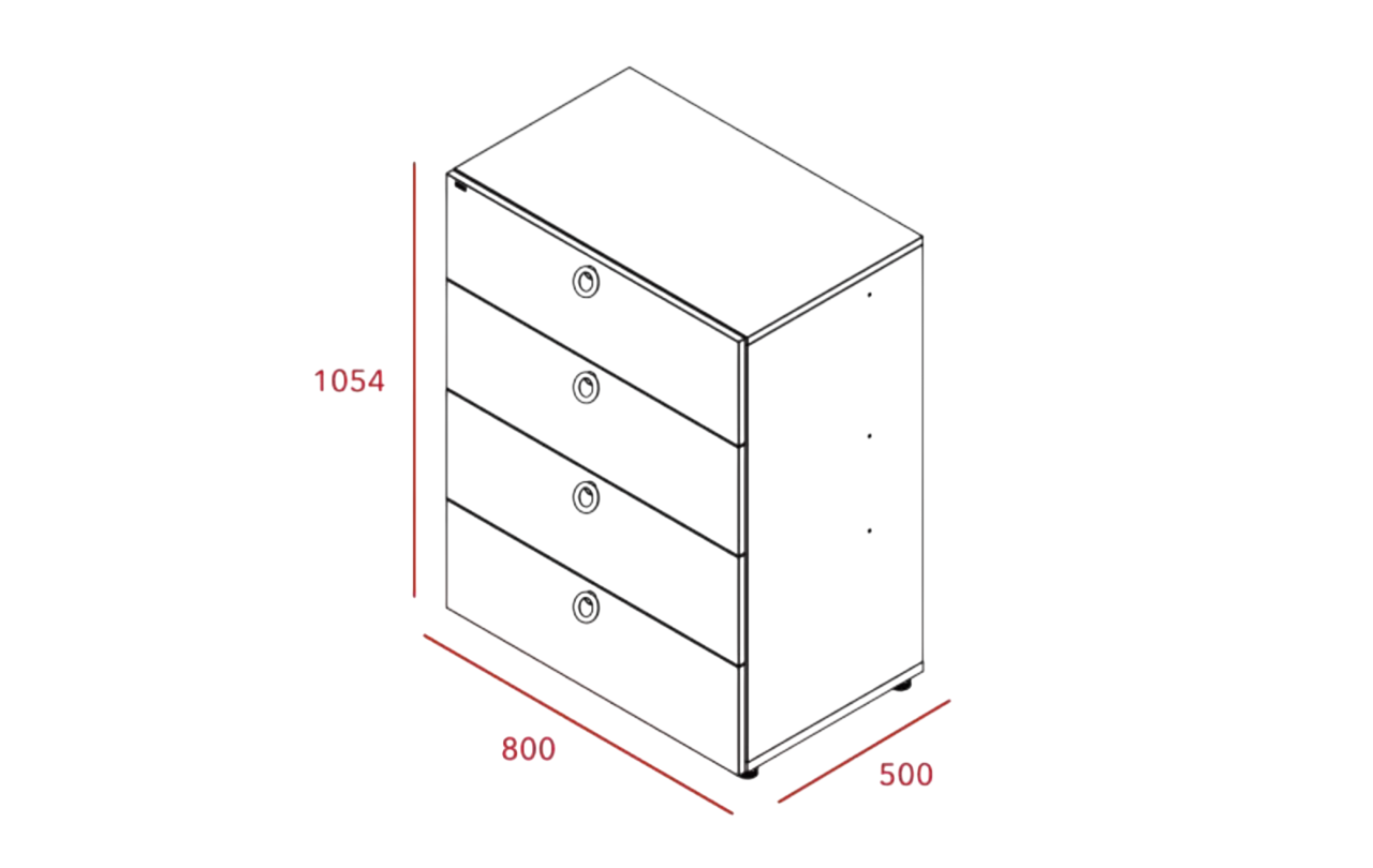 - Configuration: 4 pull-out drawers with safety rails
