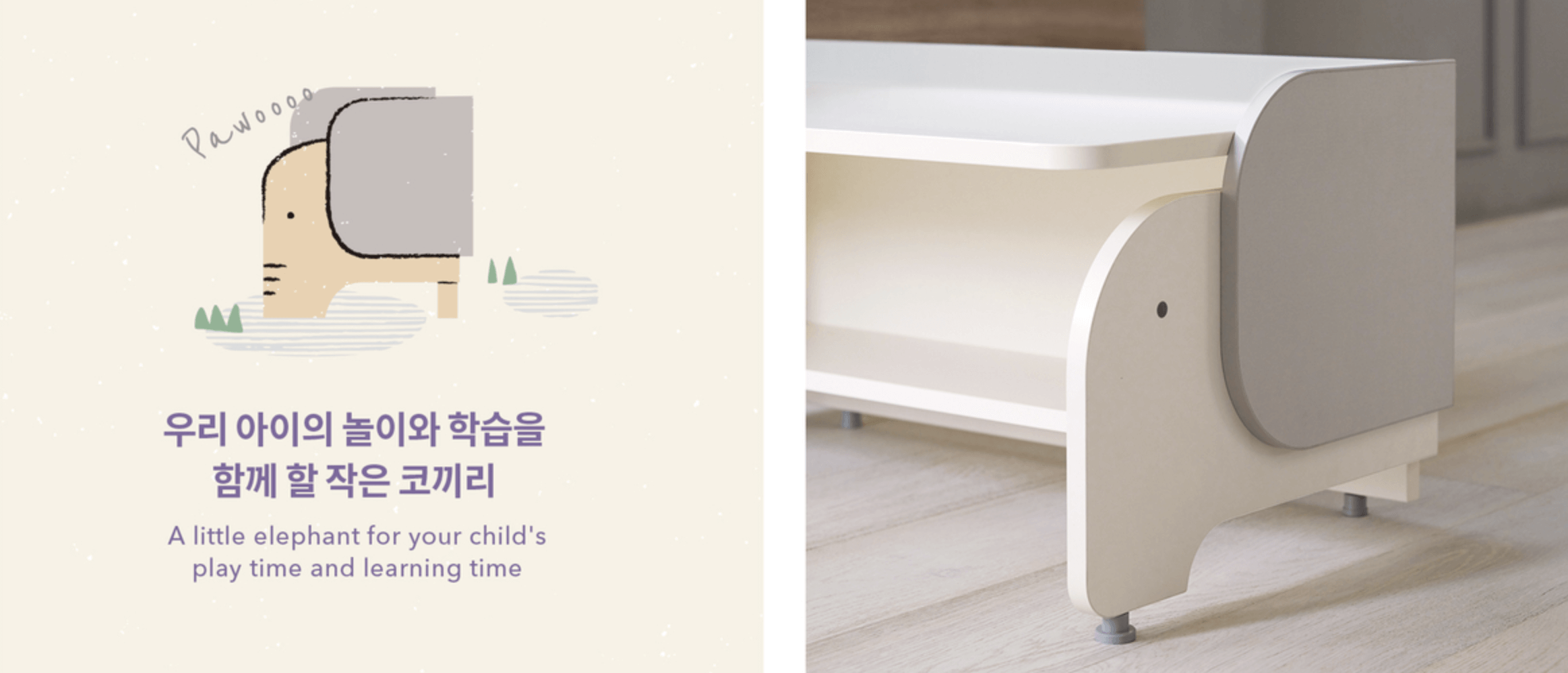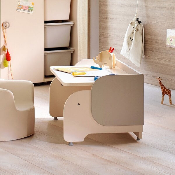 This is an Eddie Kids Elephant Desk with a compact size and cute elephant face.