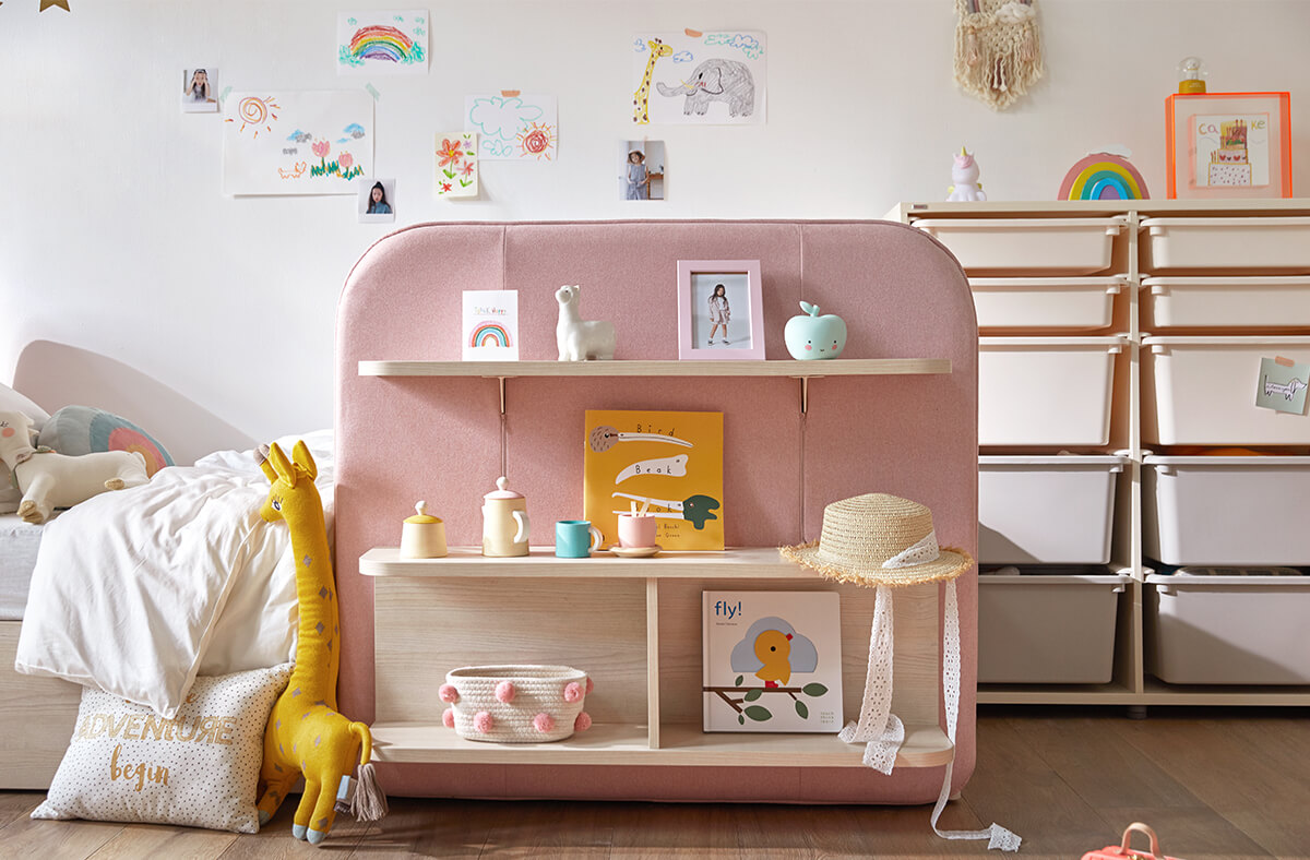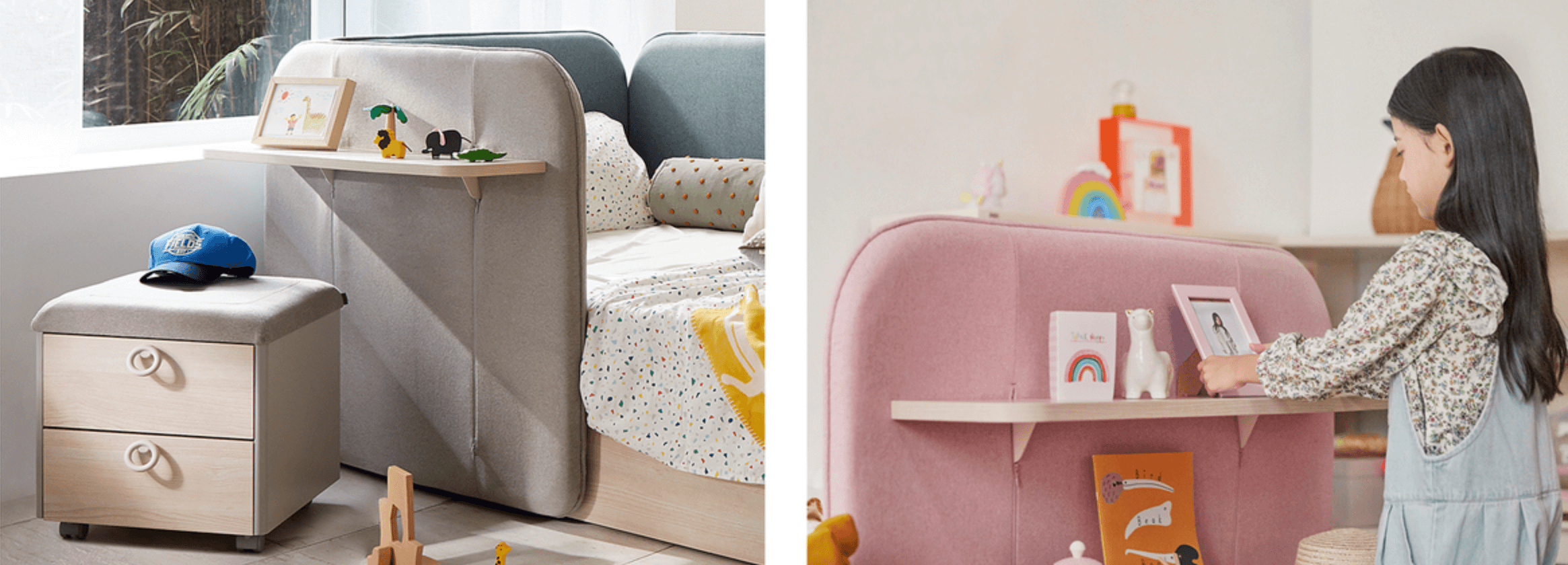 The bracket of the table and the steel frame of the bed guard Press the shelf firmly so that it connects well. |