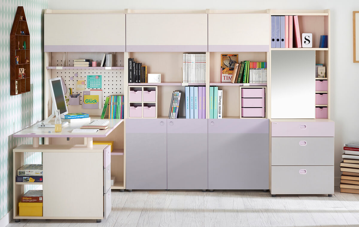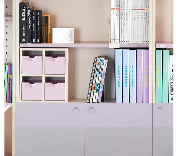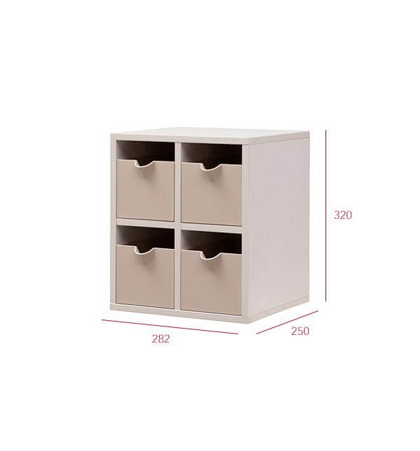 The 2*2 arrangement of 4 drawer cabinets can effectively classify and store small objects to make the desk more tidy: the drawers are equipped with partitions for more effective use of space