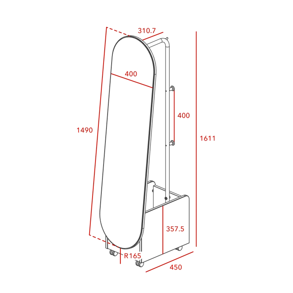 - The mirror is equipped with smooth-rolling casters, making it easy to move around as needed. The casters can also be locked in place for stability.