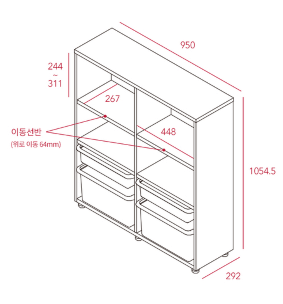 Eddy Kids PL box storage bookshelf 3-tier 950 width
