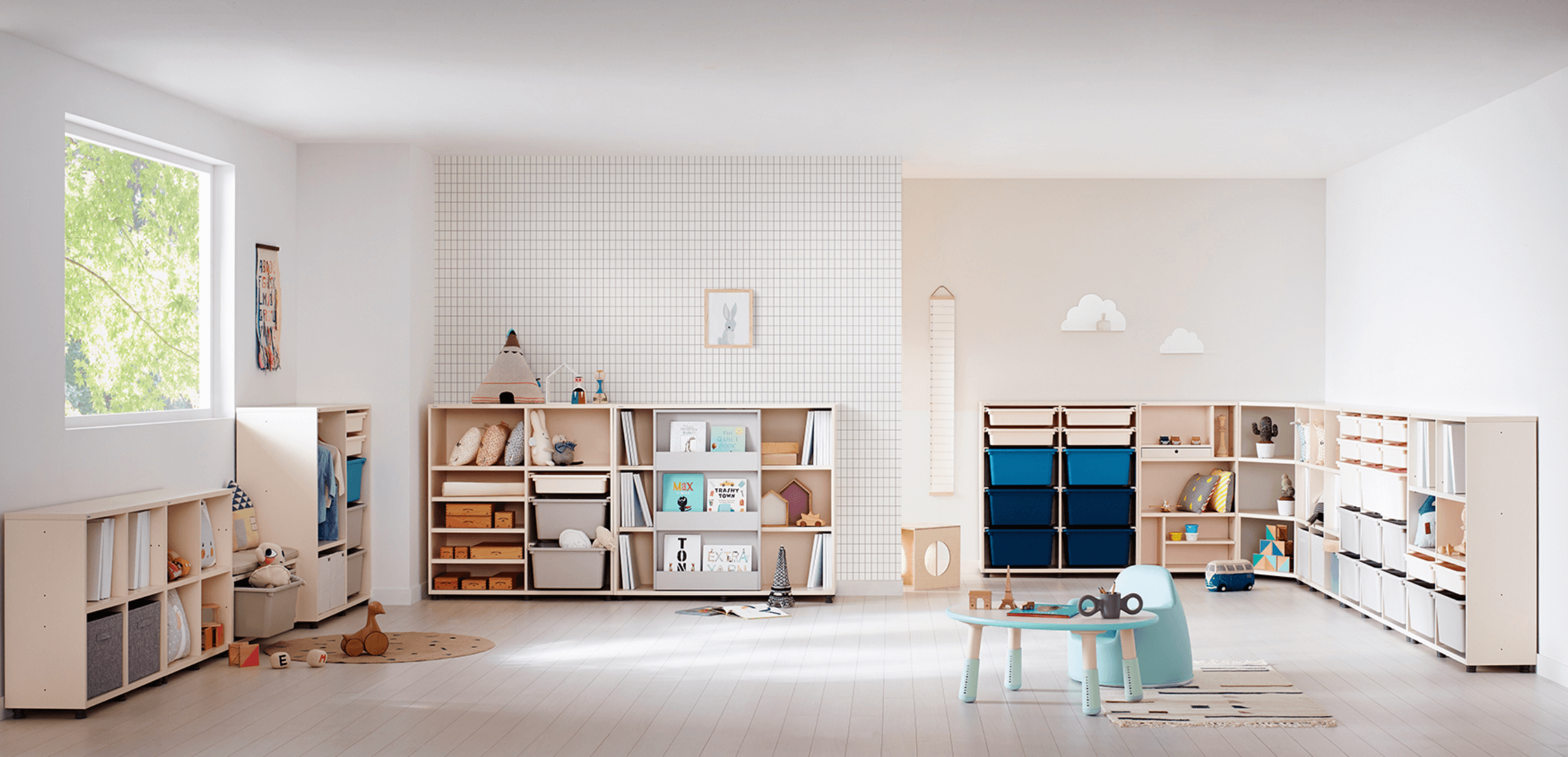 - Decorate your child's room with the'Eddy Kids' series that allows your child to neatly organize a variety of things that he or she uses throughout the day.